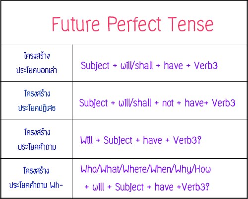 หลักการใช้ Future Perfect Tense (Tense อนาคตสมบูรณ์)